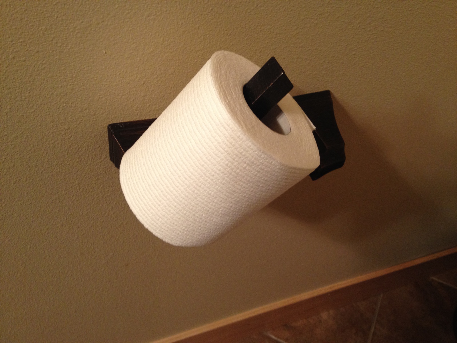Pivot toilet paper holder designs means no spring (yay!) and makes changing the roll super easy for everyone…including guys & kids!
