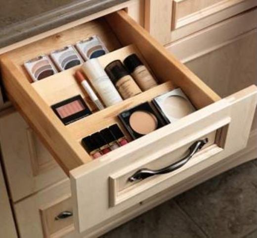 An angled drawer organizer is great for viewing cosmetics and keeping the drawer tidy!