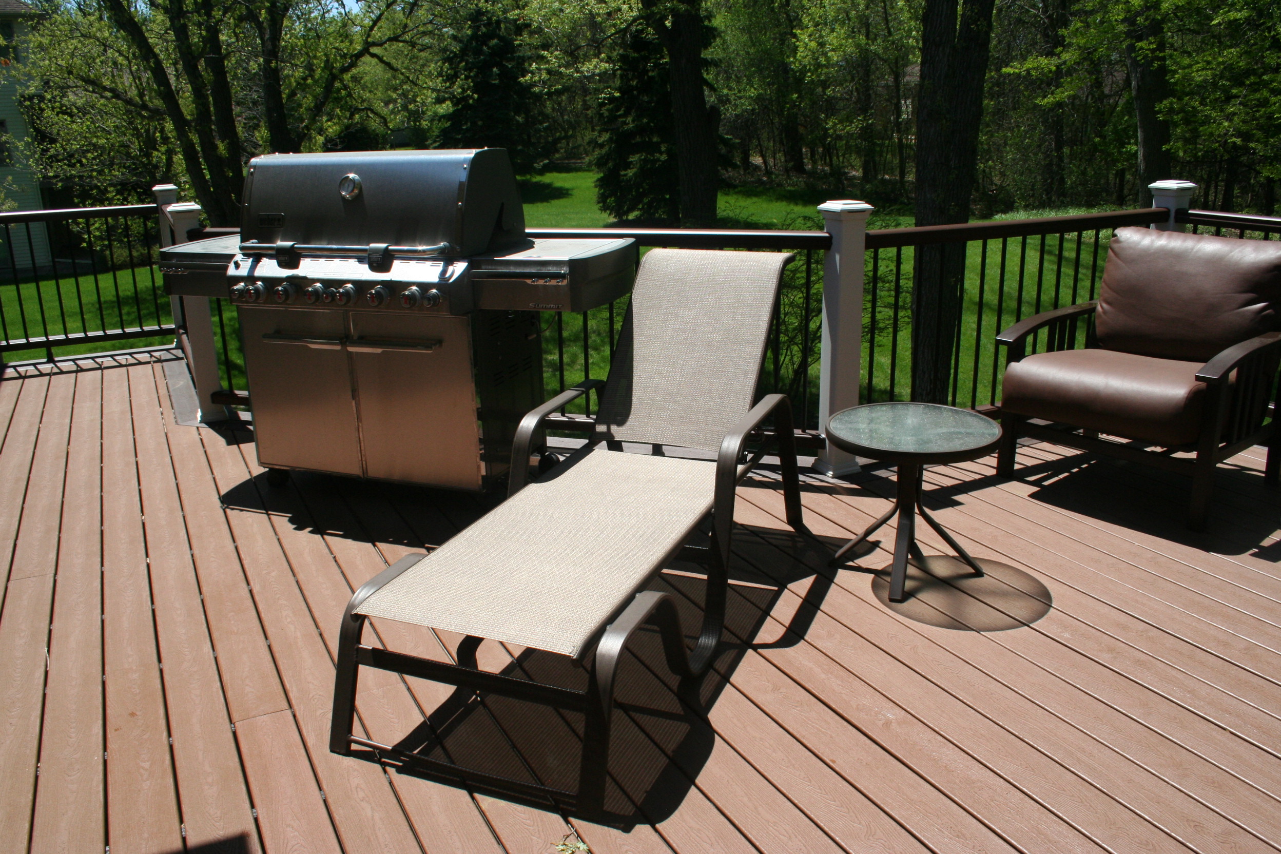 Whether you like to entertain, read, grill, or just relax , a deck is a great place to spend time in these summer months. We remodeled this particular deck with Trex Transcends maintenance free decking material…less upkeep = more time to enjoy! Three Trex Transcends colors were used on the deck: