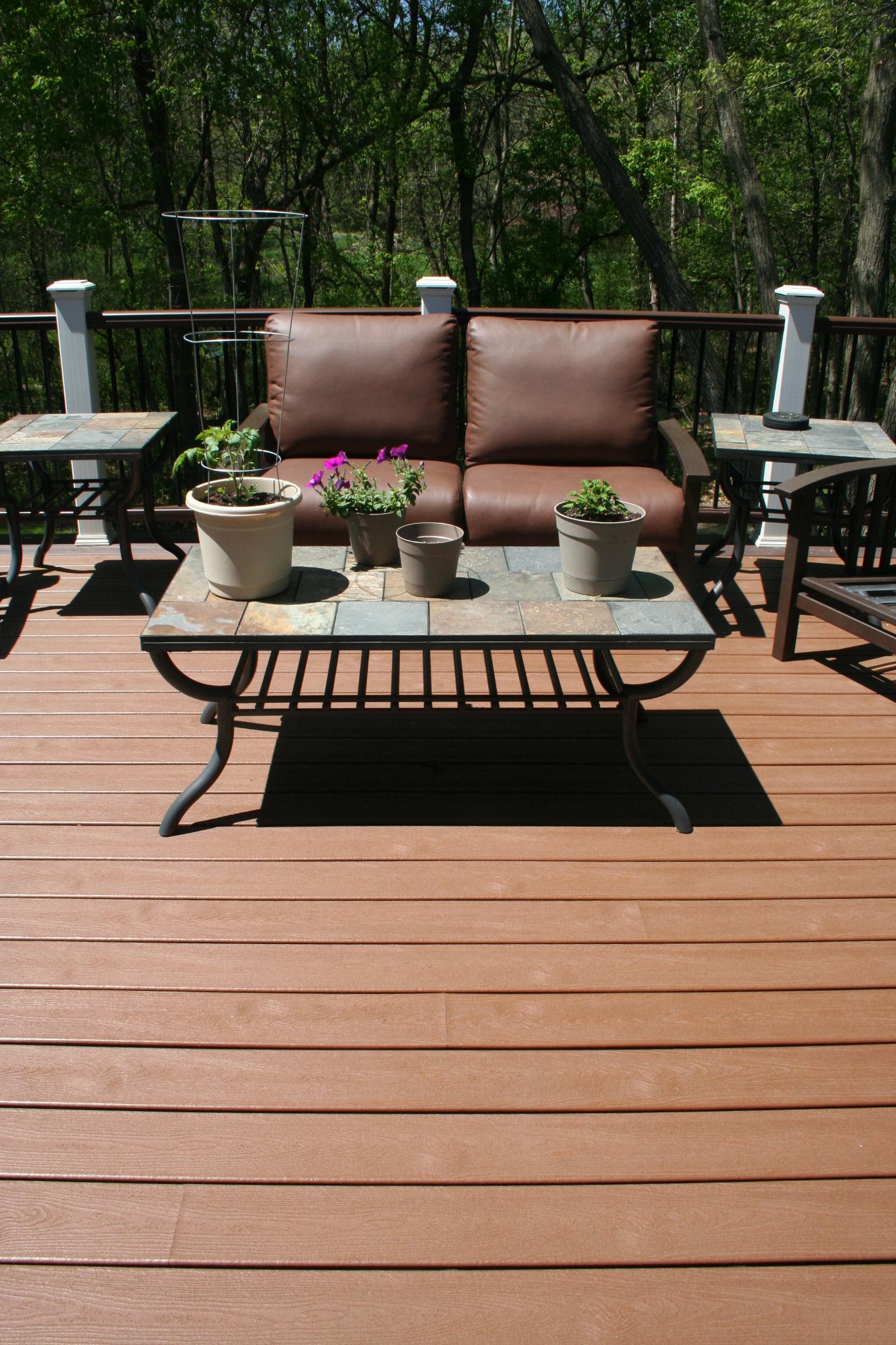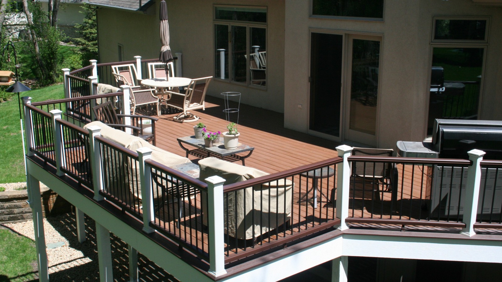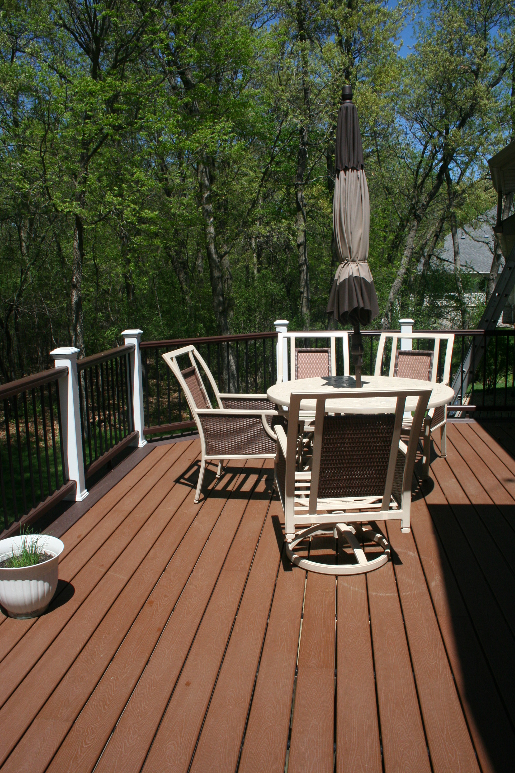- White posts perfectly accent the entire deck space