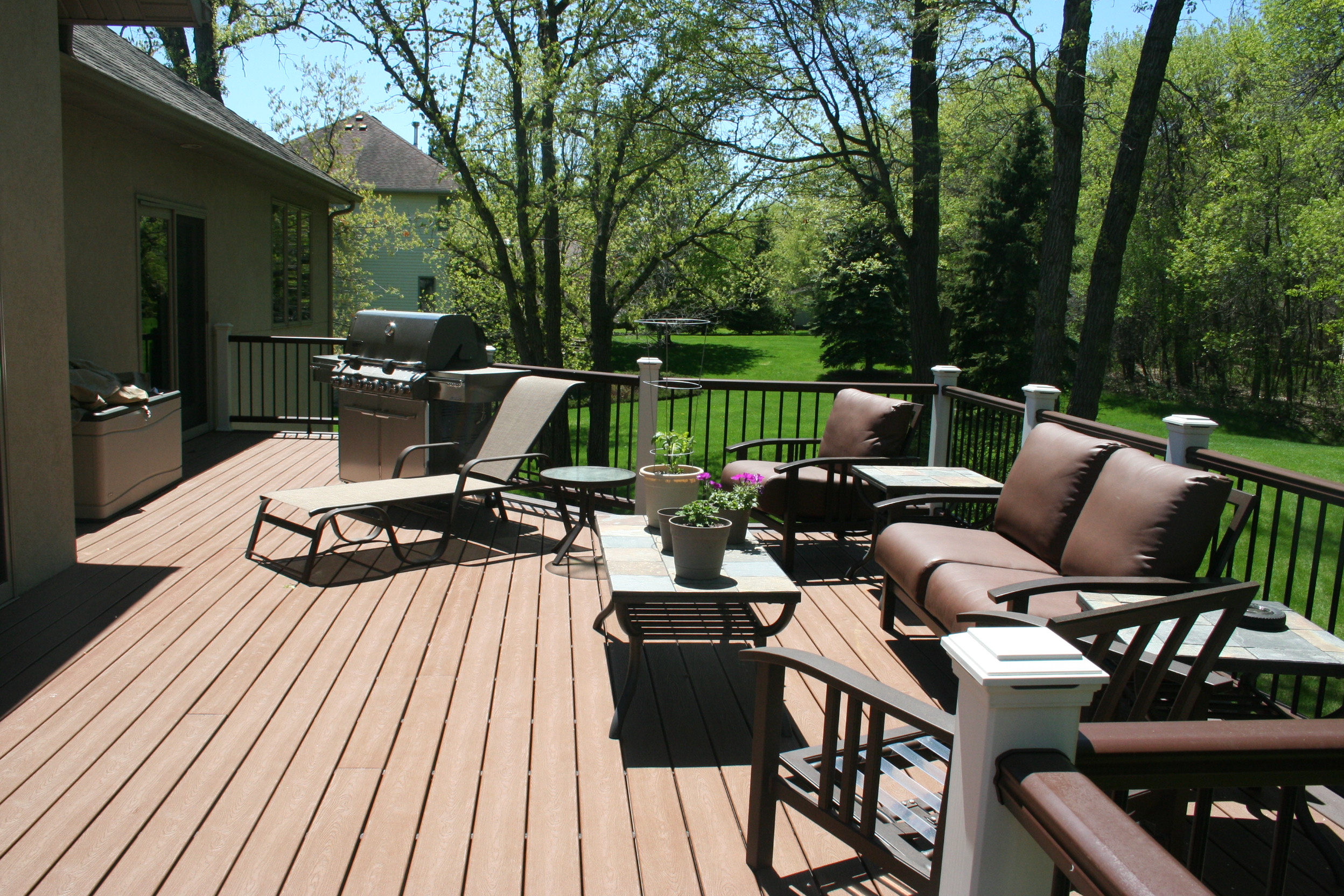 The deck posts also have Trex LED light caps, so the entire deck can illuminate once the sun has set. By expanding the deck to 660 square feet, there is now plenty of space for their patio furniture and to do all the fun activities mentioned above!