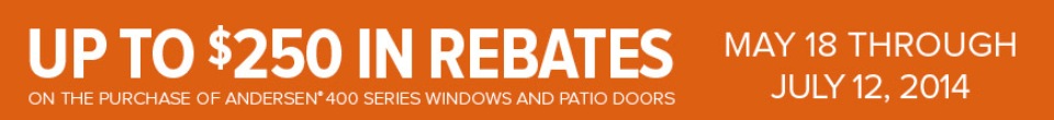 Andersen Windows has an awesome rebate going on now through July 12, 2014! Replace your windows and they’ll replace your cash!