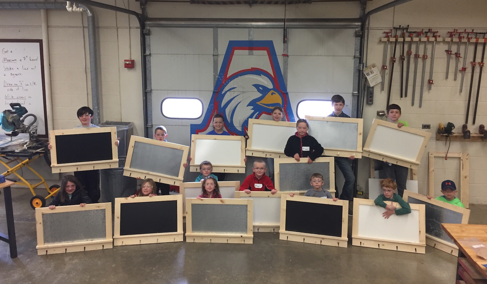 Our commercial division, Dale Gruber Construction, along with the CMBA, Dovetail Kitchens & Apollo teacher Mark Weimer put together a kids build class for St. Cloud Community Ed. Each kid built a neat farmhouse style coat rack. Great work, kids!